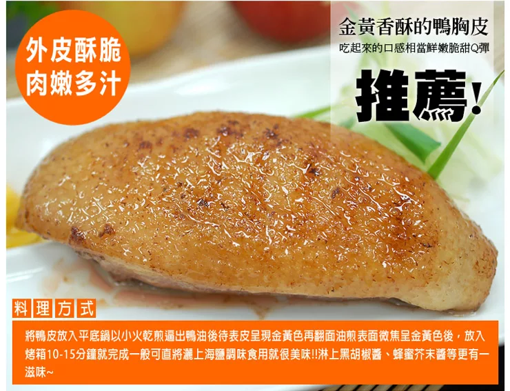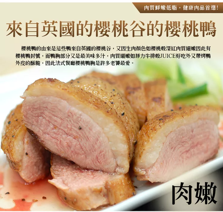 【優鮮配】大規格法式櫻桃鴨胸2片(約250g-300g-片,兩片裝)-任選是最近我買過算cp值蠻高的一個商品,下面是賣場提供的商品簡介: